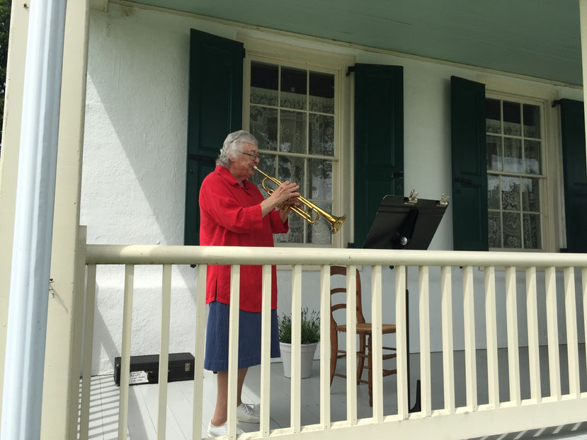 Mary White, trumpeter, accompanied all music. She also played a special Anthem, Chester, which was considered the National Anthem, during the Revolutionary era and our first National Anthem. Chester was written by William Billings in 1770.